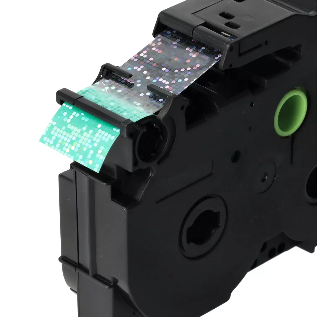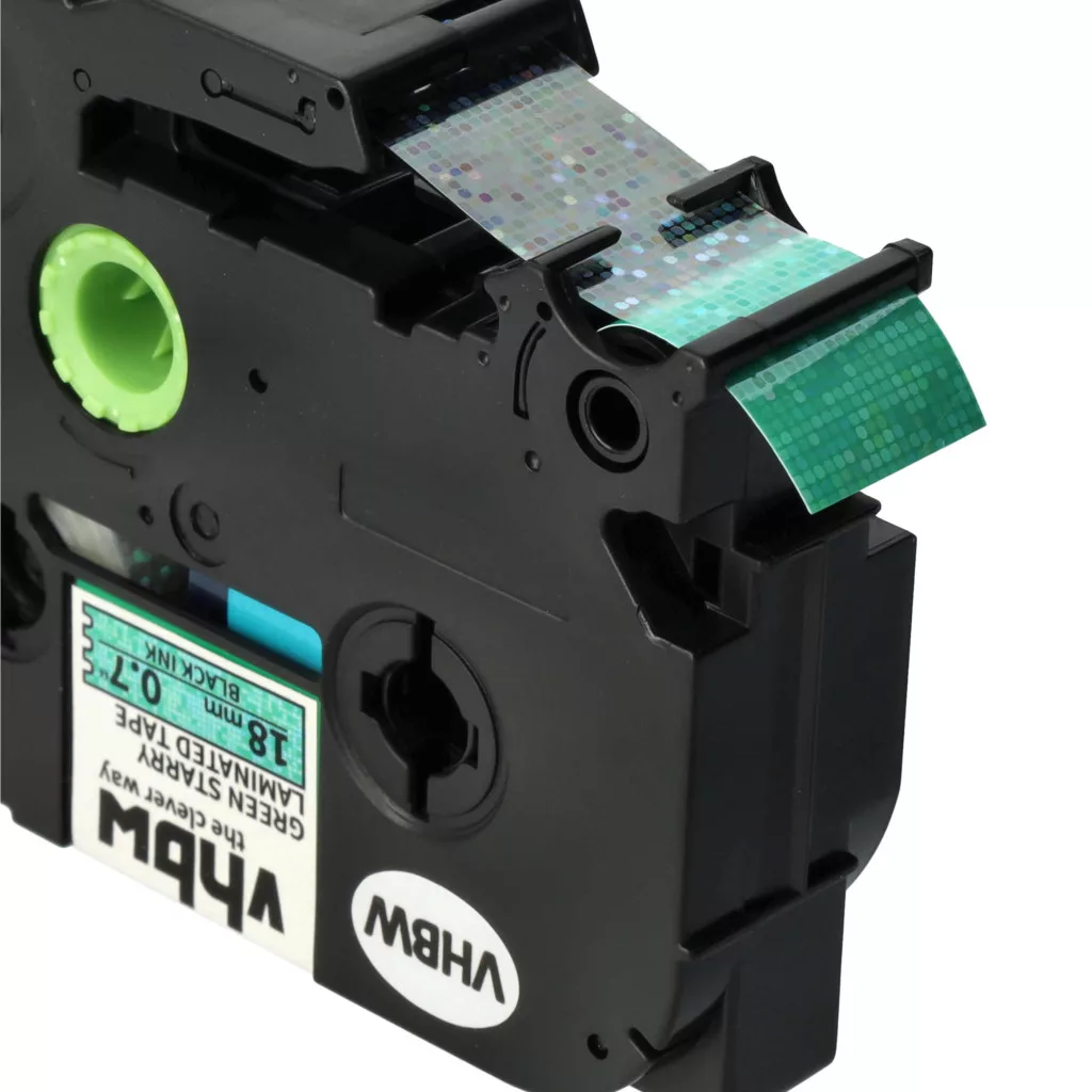 Brother TZE-741L1 helyettesítő címkeszalag (Zöld (Csillámos) alapon Fekete) - Utángyártott