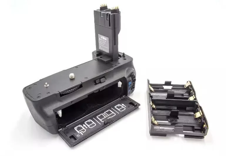 Helyezhető bele 2db LP-E6 típusú akkumulátor vagy 6db AA elem, amivel meghosszabbítható az üzemidő.
