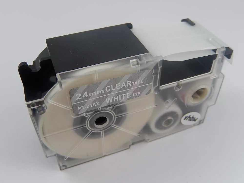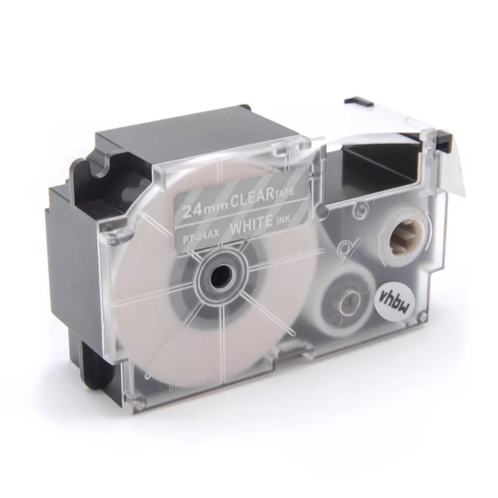 Casio XR-24AX, XR-24AX1 helyettesítő címkeszalag (Átlátszó alapon Fehér) - Utángyártott