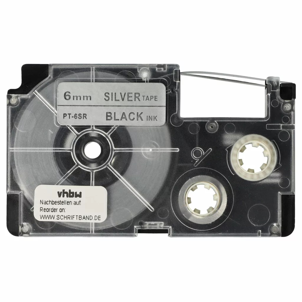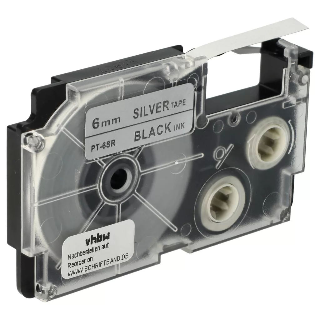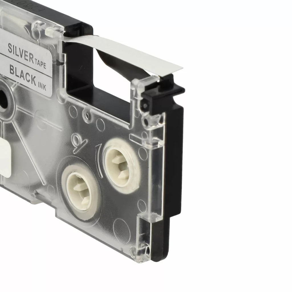 Casio XR-6SR, XR-6SR1 helyettesítő címkeszalag (Ezüst alapon Fekete) - Utángyártott