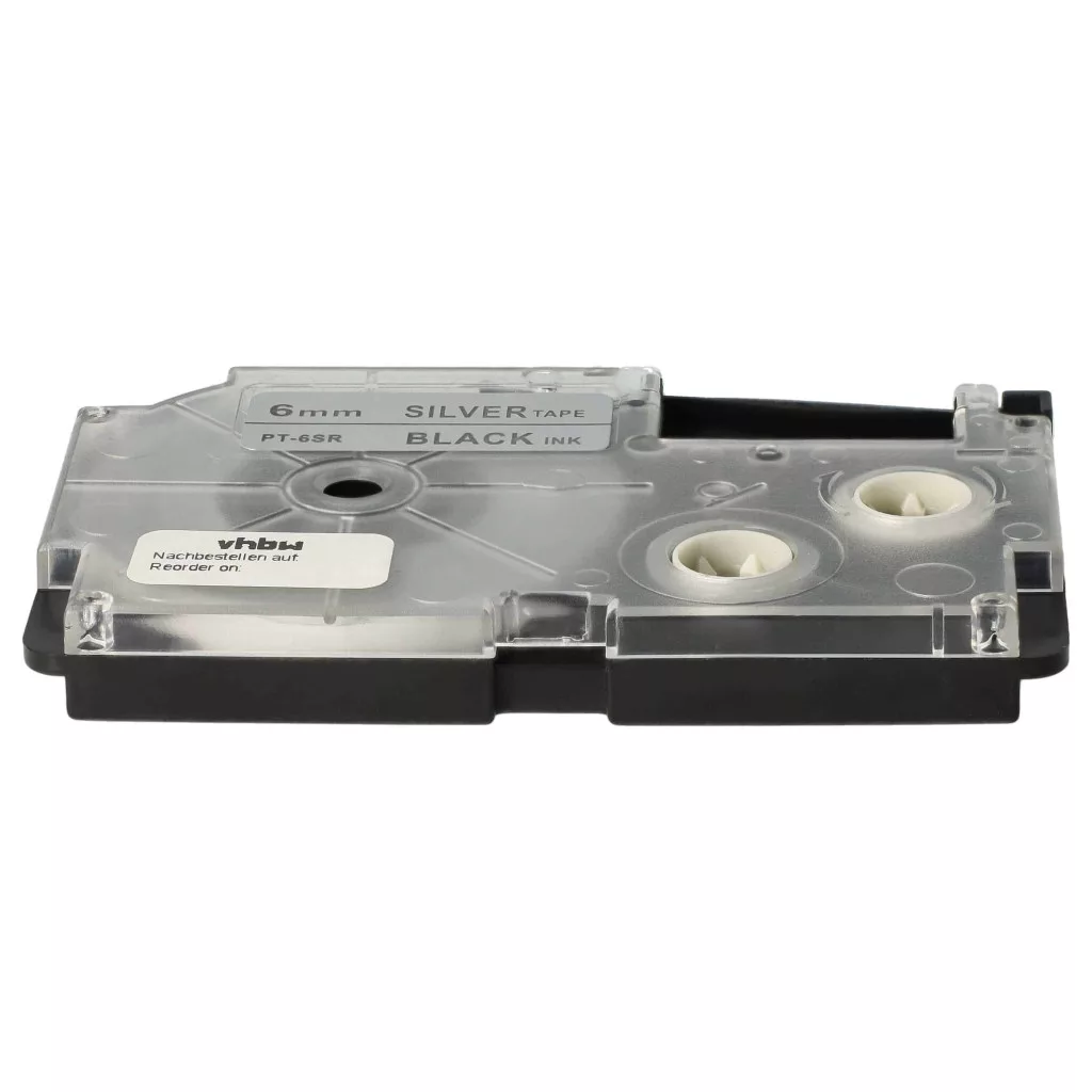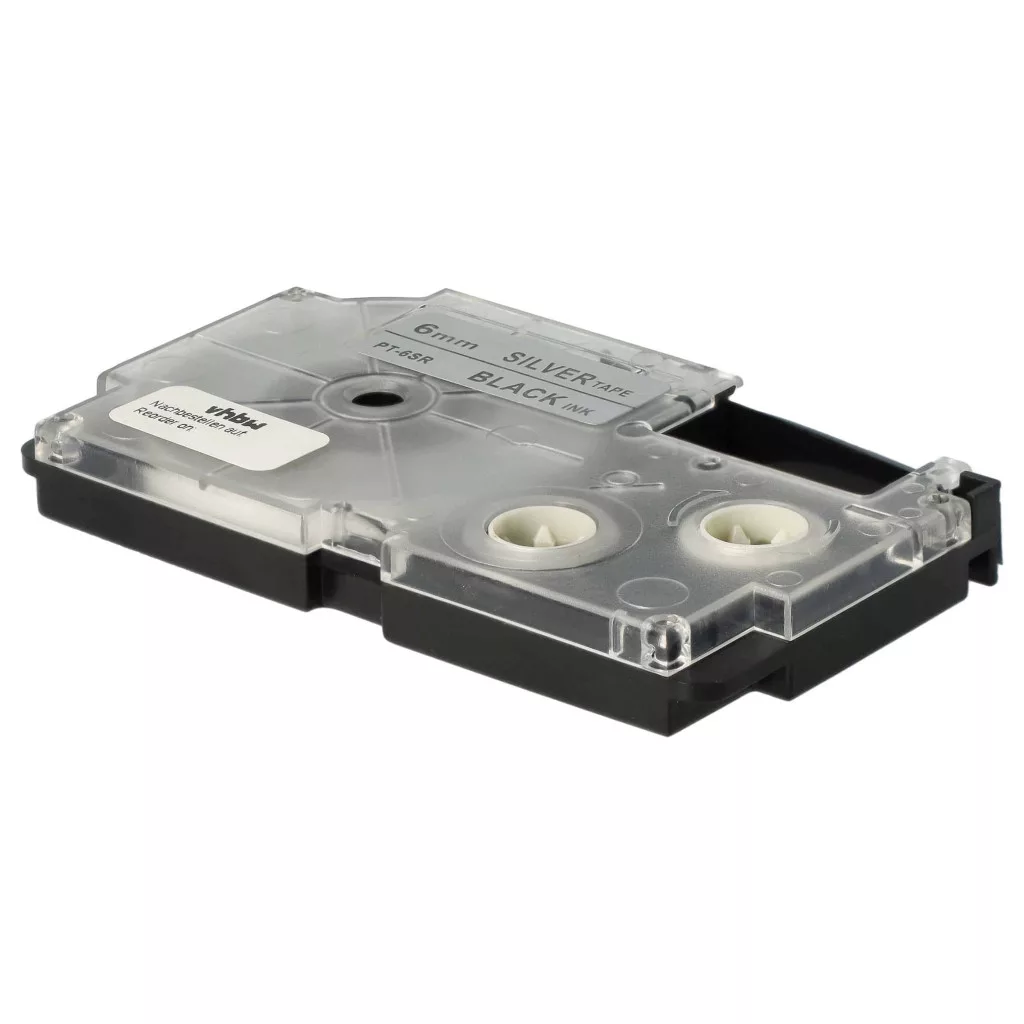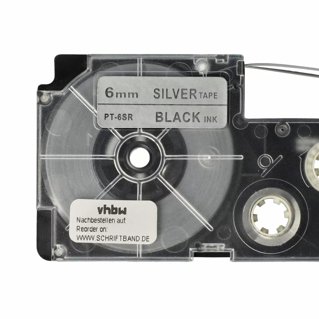Casio XR-6SR, XR-6SR1 helyettesítő címkeszalag (Ezüst alapon Fekete) - Utángyártott