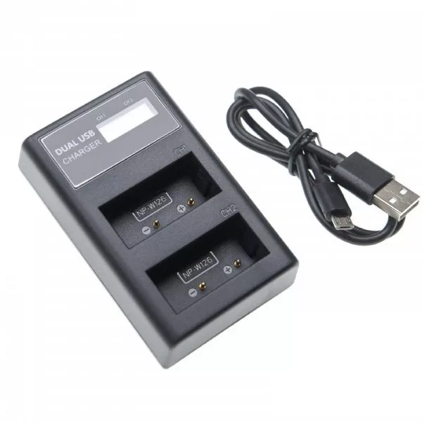 Kiváló minőségű dupla töltőállomás LCD kijelzővel Fujifilm FinePix HS50EXR készülékhez, új állapotú, utángyártott.