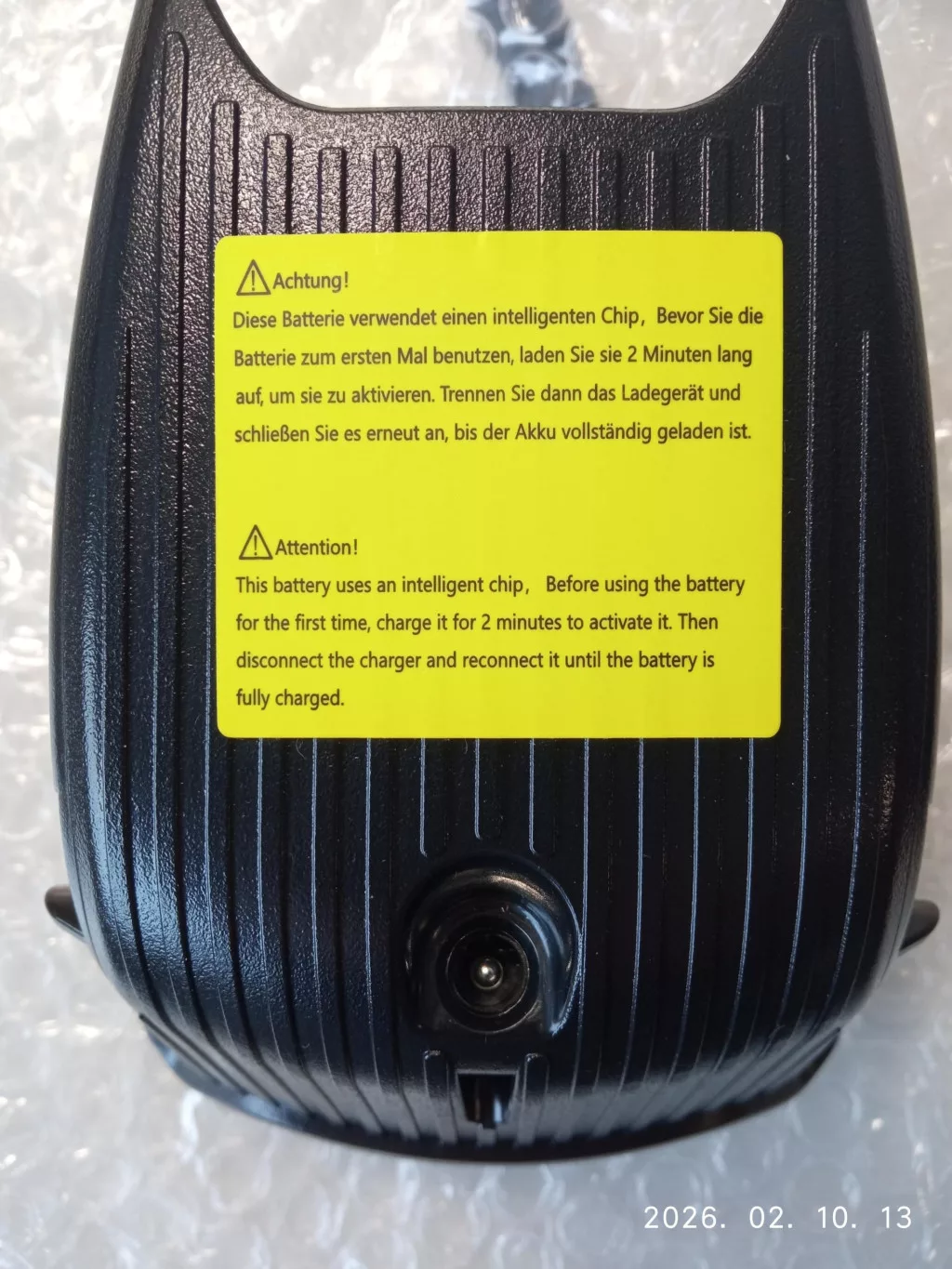 FIGYELEM!!! Ez az akkumulátor intelligens chipet használ. Az első használat előtt töltse két percig az aktiváláshoz. Ezután húzza ki a töltőt, majd dugja vissza, és hagyja teljesen feltöltődni az akkumulátort!