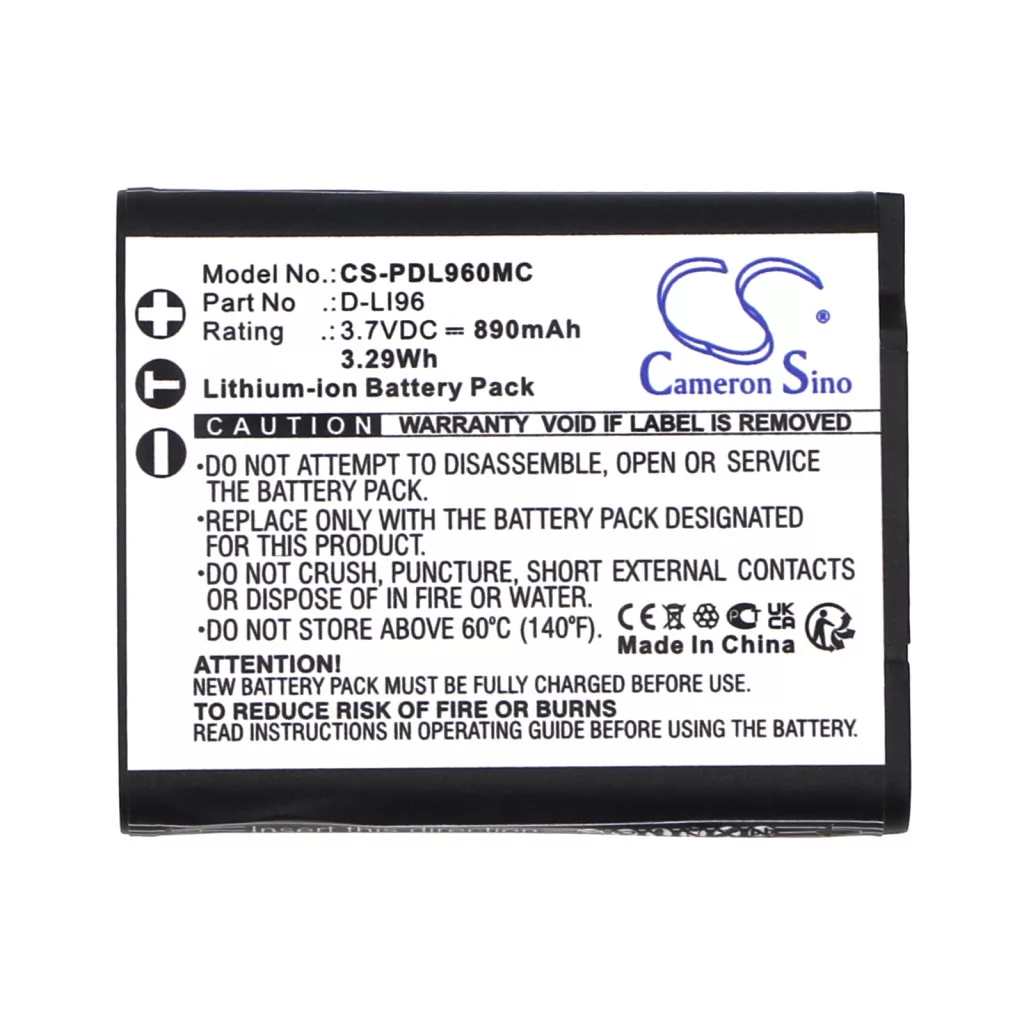 Pentax D-LI96 helyettesítő akkumulátor (Li-ion, 3.7V, 890mAh / 3.29Wh) - Utángyártott