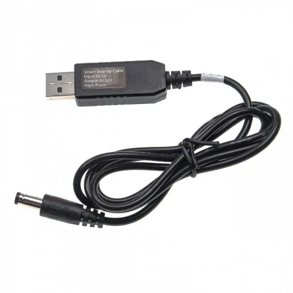 Töltőkábel (USB-A (Apa), 5.5 x 2.5 mm Barrel csatlakozó, 1m, Fekete, 12V, 1 A) - Utángyártott